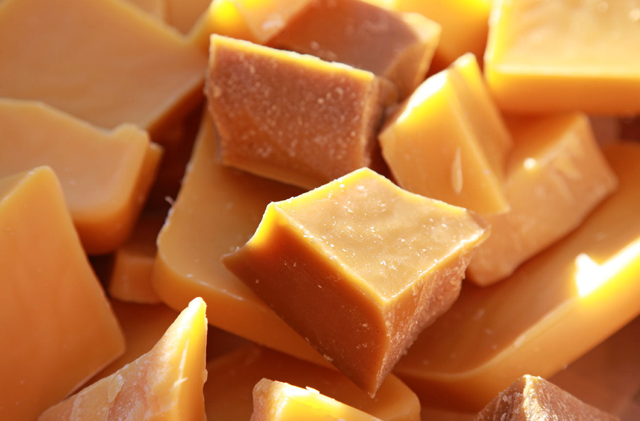 Beeswax is a lovely, golden ingredient in bee hives that provides structure and is made by wax-producing glands in the abdominal segments of worker honeybees. Once delicious honey is extracted from the comb/hive, the wax left behind is fairly clean of debris, quite dense and a bright, beautiful yellow. We clarify the wax with water before melting it into Alpine Bee candles, and add some clean-burning coconut oil to aid the beeswax in melting smoothly.